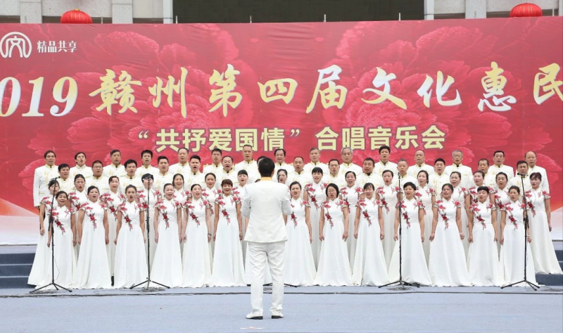 为庆祝新中国成立70周年,以动听的歌声喜迎2019年新年,1月19日上午,“共抒爱国情怀”合唱音乐会在赣州市黄金广场火热上演。