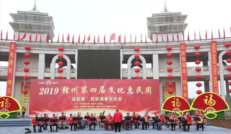 1月20日,2019赣州第四届文化惠民周“百姓大舞台 大家一起来”赣州市迎新春民乐演奏音乐会在黄金广场举行。