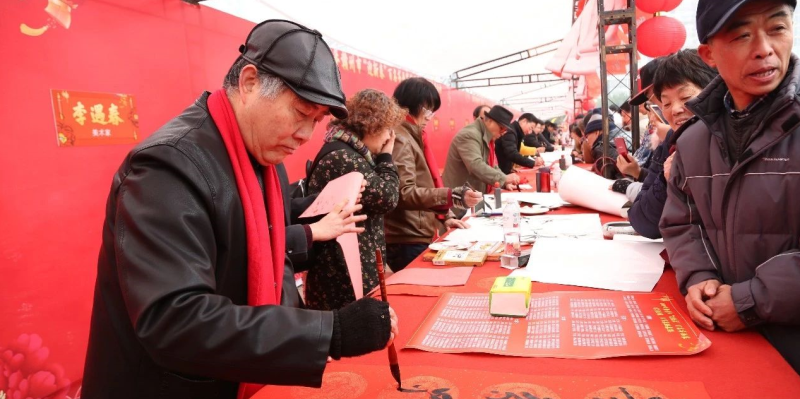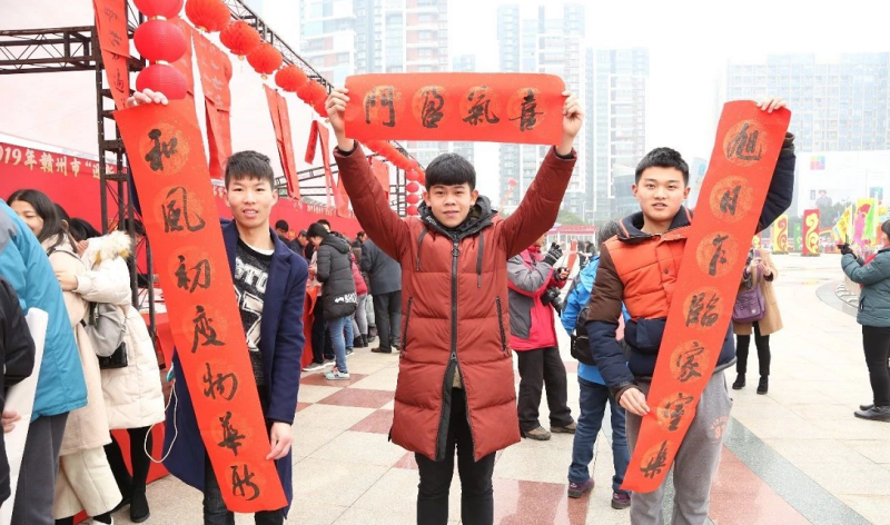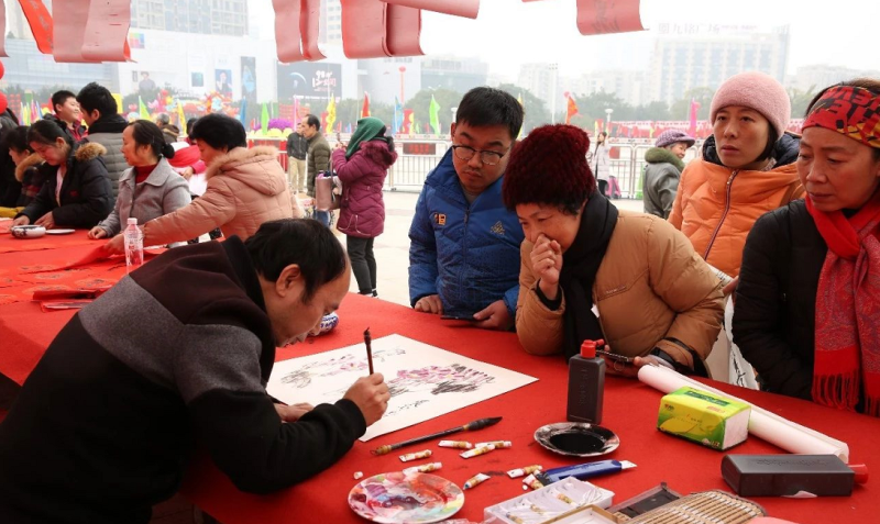 1月21日上午,黄金广场一片火红景象,赣州市百名书画家在黄金广场挥毫泼墨,现场书画新年春联和山水佳作,免费赠送给市民,吸引了众多书画爱好者和市民,为即将到来的春节增添了气氛。