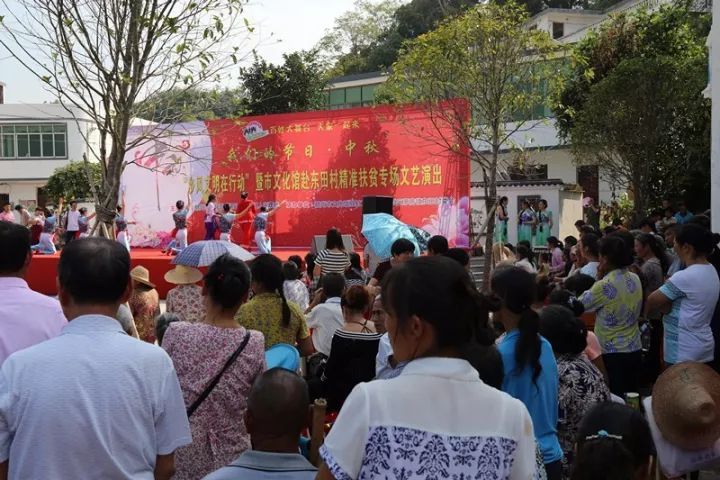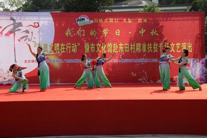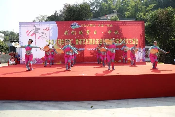 为喜迎十九大的胜利召开,推进“乡风文明行动”,9月30日,我们的节日·中秋“乡风文明在行动” 暨市文化馆赴东田村精准扶贫专场文艺演出在东田村乡誉舞台举行。演员们用欢快的歌舞表达对党的无限忠诚和热爱,表达了对乡风文明建设成果的喜悦之情。