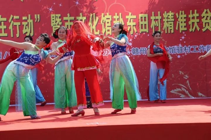 东田村位于赣县东郊,是茅店镇东面的交通枢纽,近年来,通过“乡风文明在行动”和精准扶贫工作的深入开展,基础设施日渐完善,村貌焕然一新,舞蹈《走进新农村》和《爷爷奶奶和我们》,生动地诠释出了今天东田村村民的幸福生活。东田村有着深厚的客家历史底蕴,保留着古朴的客家宗祠,客家节庆、饮食民俗等保存完好,有动人的民间传说、技艺精湛的鲤鱼灯制作技艺,舞蹈《客家女》和《迎客来》,讲述了东田村的历史与变迁,传达出了东田人的诚恳和热情。