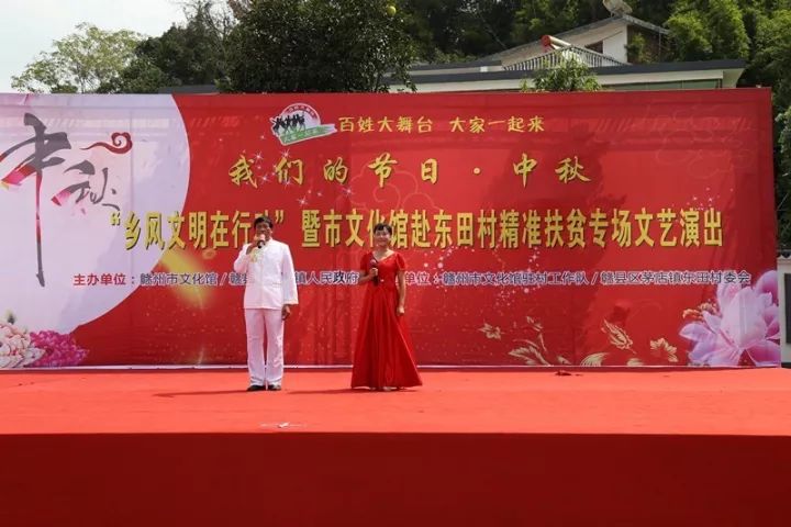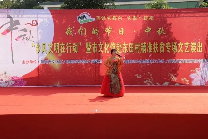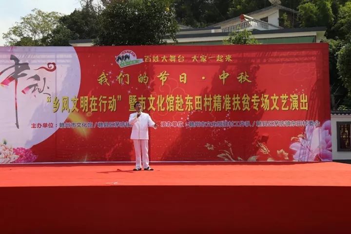 本场演出由赣州市文化馆、赣县区茅店镇人民政府联合主办,赣州市文化馆驻村工作队及茅店镇东田村委会联合承办。赣州市文化馆组织了市文化馆小南社区艺术团、红枫艺术团、映山红合唱团、大众艺术团等4个文化志愿艺术团,共70余名演职人员参与本场演出。本场演出节目类型包括舞蹈、赣南采茶小戏、男声小组唱、男女声对唱等16个节目。