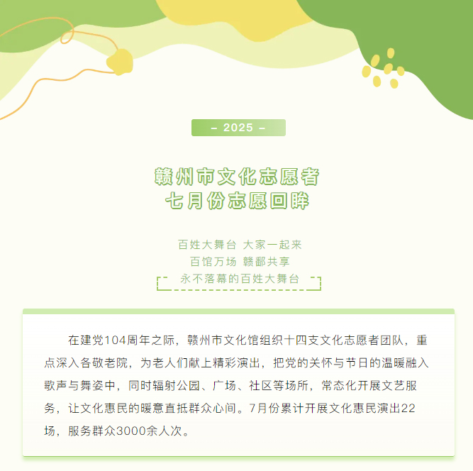 ※ 特别声明:本公众号仅用于赣州市文化馆公共文化服务及群众文化艺术普及,不用于任何商业用途。所转载文章及图片、视频、音频等版权均属原作者。如有侵权,请及时与本公众号联系。