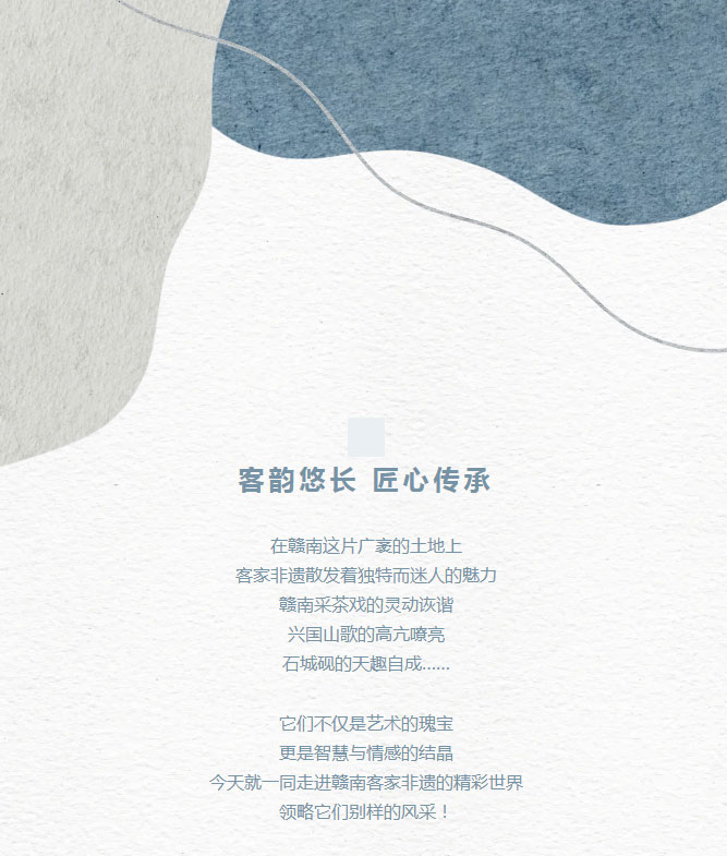 ※ 特别声明:本公众号仅用于赣州市文化馆公共文化服务及群众文化艺术普及,不用于任何商业用途。所转载文章及图片、视频、音频等版权均属原作者。如有侵权,请及时与本公众号联系。