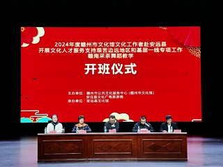 2024年12月6日,由赣州市公共文化服务中心(赣州市文化馆)、安远县文化广电旅游局主办,安远县文化馆承办的“2024年赣州市文化馆赴安远县开展文化人才服务支持艰苦边远地区和基层一线专项工作(赣南采茶舞蹈教学培训班)”在县采茶戏大剧院开班。赣州市公共文化服务中心副主…