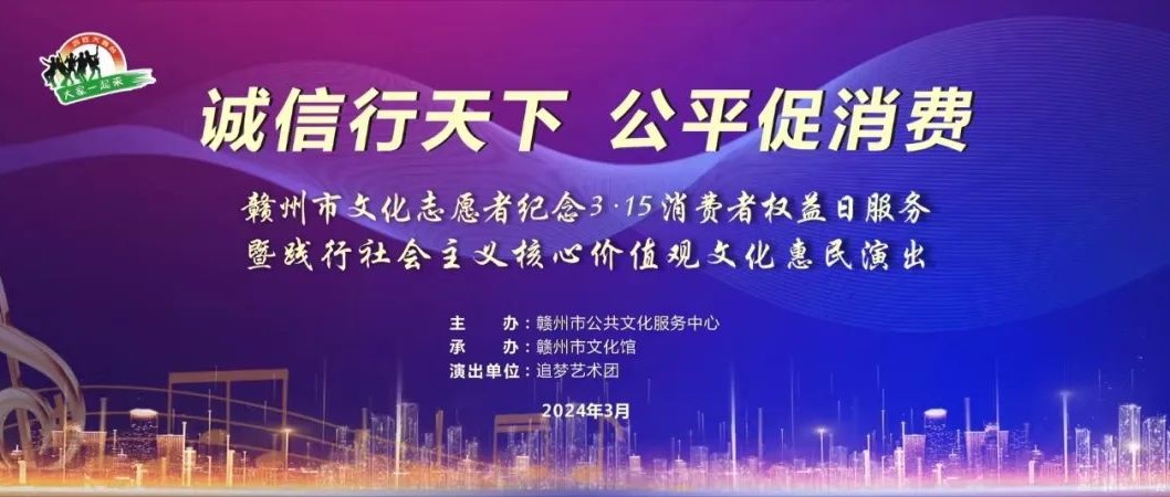 诚信与公平,是社会中最为重要得基石之一。正是这些价值观得坚守与践行,才能够推动消费者权益保障与经济的可持续健康发展,助力社会不断进步。在3月15日这个特别的日子里,由赣州市公共文化服务中心主办、赣州市文化馆承办、追梦艺术团参与演出的 “诚信行天下 公平促消…
