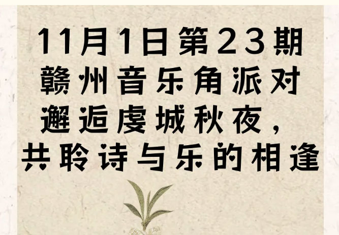赣文轻骑兵 | 11月1日第23期赣州音乐角派对邂逅虔城秋夜,共聆诗与乐的相逢