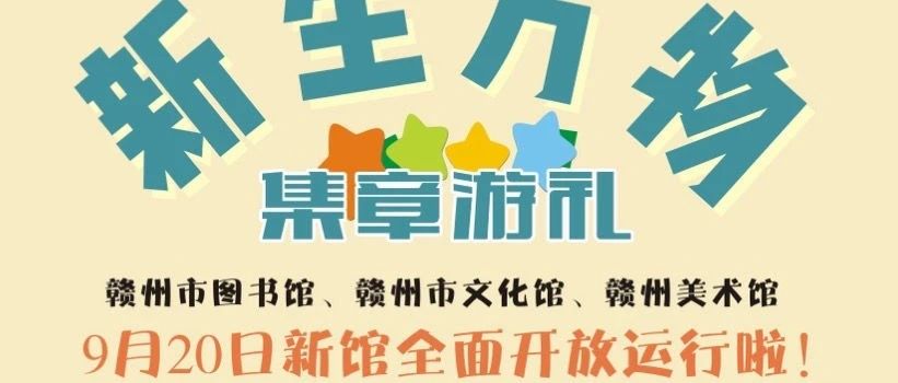火出圈的“集章打卡”活动来了印一个章,藏一处景,解锁一座文化城。9月20日,赣州市公共文化服务中心全面开放运营啦!赣州市图书馆、赣州市文化馆、赣州美术馆三馆联合推出“新生万物集章游礼”打卡活动,带您认识场馆新面貌,定格美好记忆!本次活动的印章图案包含场馆…
