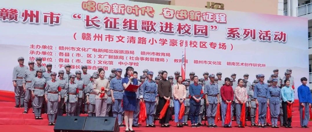 为弘扬长征精神,传承红色基因, 4月17日上午,由赣州市文广新旅局、赣州市教育局主办的“唱响新时代 奋进新征程——赣州市“长征组歌进校园”系列活动启动仪式暨首场演出,在赣州市文清路小学豪德校区成功举办。赣州市政府副秘书长温海、赣州市委教育工委副书记郭强、赣…