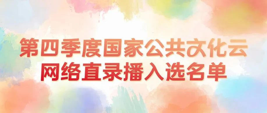 为贯彻落实《“十四五”公共文化服务体系建设规划》,推动国家公共文化云网络直录播高质量发展,深化供给侧结构性改革,提升人民群众文化获得感、幸福感,文化和旅游部全国公共文化发展中心组织开展了2022年第四季度国家公共文化云网络直录播遴选工作,经过各地报送和审核…