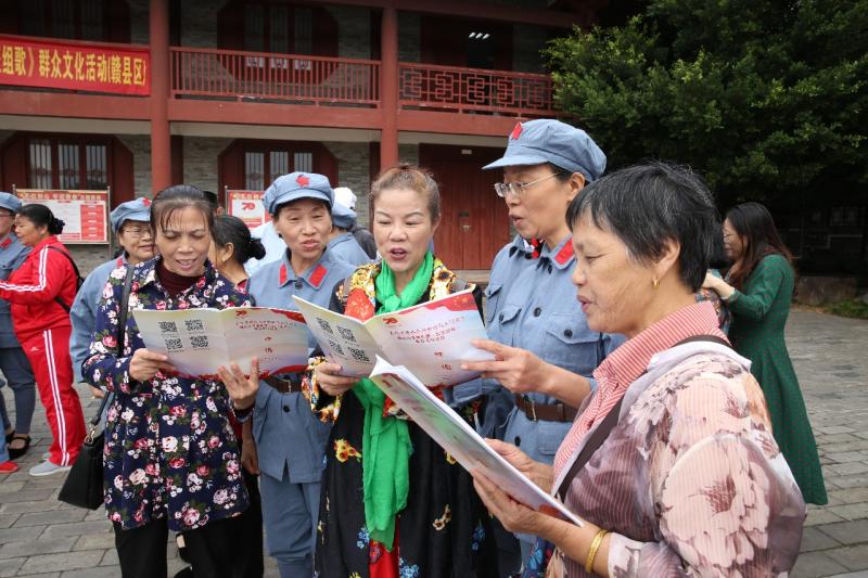 ▲赣县区文昌阁开展《长征组歌》传唱活动