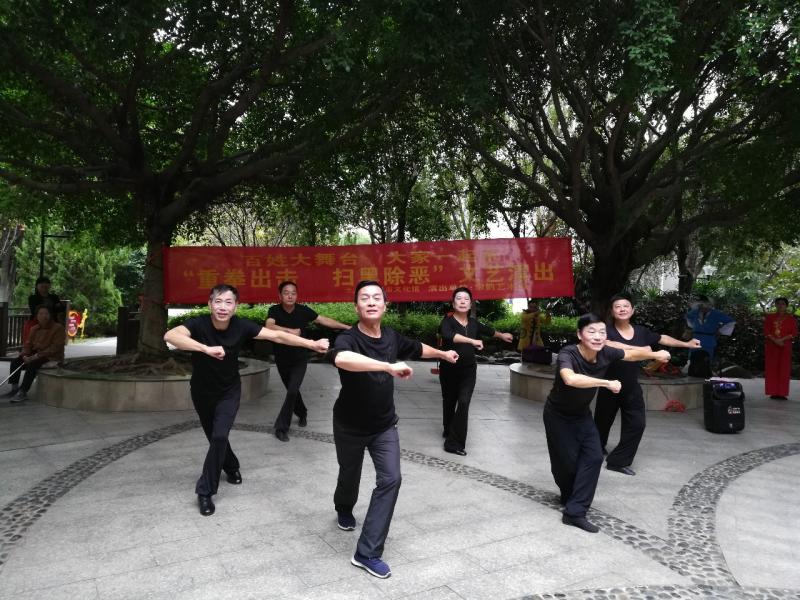 ▲10月27日,宋韵采茶艺术团在樱花公园参加了由赣州市文化馆主办的“重拳出击扫黑除恶”文艺演出。