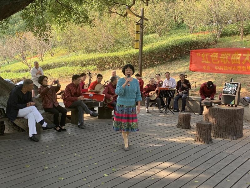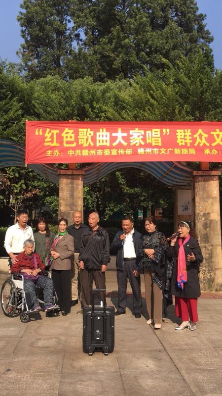 红旗招展红歌唱,群众参与热情高。为传承红色基因,弘扬红色文化,进一步丰富中心城区广大群众的精神文化生活,赣州市文化馆积极响应中共赣州市委宣传部、赣州市文广新旅局的号召,于11月开始组织文化志愿者在中心城区开展“红色歌曲大家唱”群众文化活动,日前已开展近两周,受众面广,好评如潮。