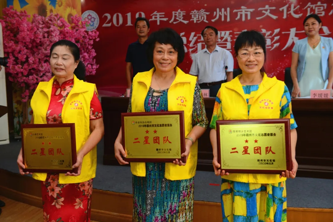 2019年度,赣州市文化志愿者队伍在市文广新旅局的指导下,在市文化馆的直接领导下,始终坚持以人民为中心的工作导向,深入社区、广场、乡村、景区、敬老院等地持续开展“百姓大舞台、大家一起来”主题文化活动,全年开展活动240余场,参演群众9600余人,观众16万余人次。多门类、多形式,丰富多彩的文化志愿服务活动,展示了新时代新风貌,带动了许多群众文化爱好者投入到火热的群众文化生活中来,丰富和活跃了群众精神文化生活,提升了群众的获得感和幸福感。