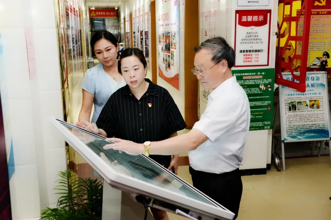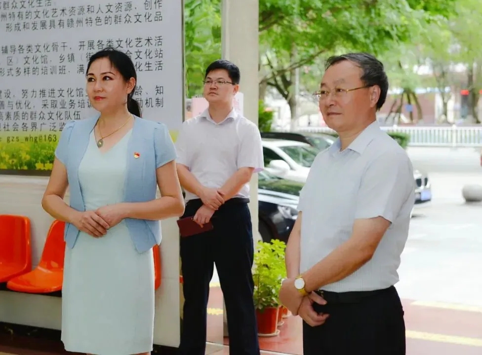 在赣州市文化馆,何福洲认真观看了赣州市文化馆制作的广场舞快闪《新长征 再出发》和党建宣传片《让党旗在群文战线高高飘扬》,参观了赣州市文化馆各楼层的布置情况,并与群文工作者亲切交谈。