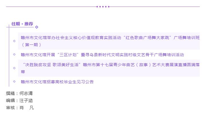 为传承“红色基因”,赣州市文化馆深入推进“红色引擎工程”,充分发挥地域特点,结合文化资源优势,打造“红色阵地”,采取多种形式传承红色基因和红色文化,并创作推出系列优秀红色文艺作品,广泛开展宣传教育,积极营造红色基因代代相传的浓厚氛围。