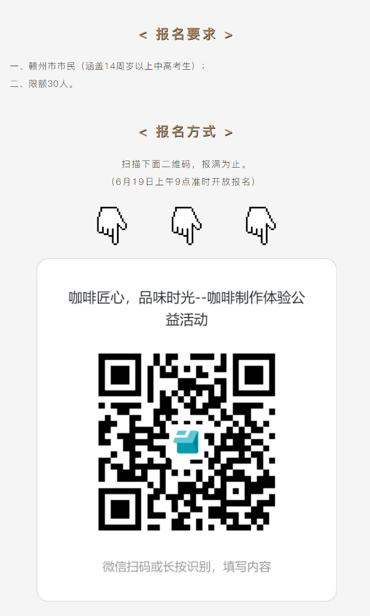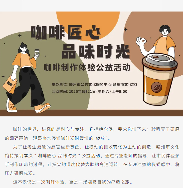 当前位置: 首页 > 文化动态 > 活动报名 | 咖啡匠心 品味时光——咖啡制作体验公益活动