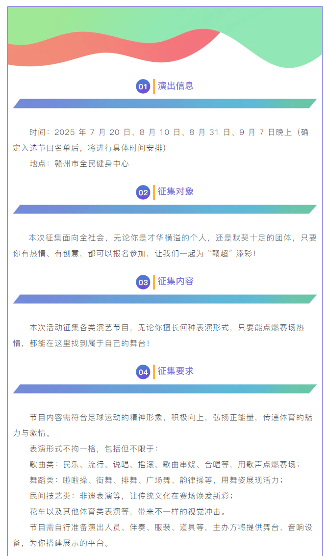 节目征集 | 等你来炸场!赣超联赛(赣州赛区)暖场节目征集中!