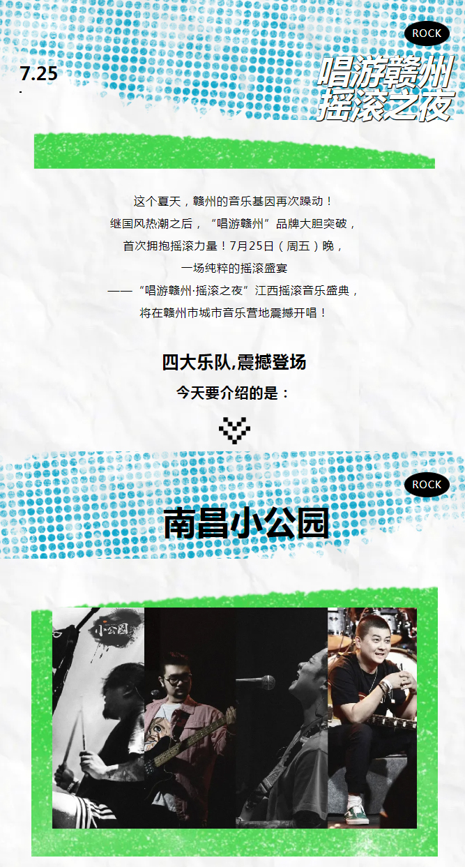 当前位置: 首页 > 文化动态 > 【预约名额已满】唱游赣州摇滚之夜 | 和小公园乐队一起演绎独立摇滚魅力