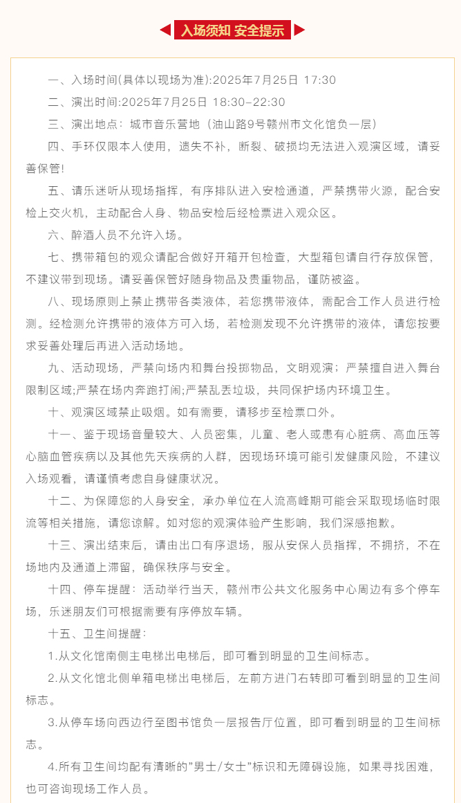 当前位置: 首页 > 文化动态 > 唱游赣州摇滚之夜 | 这份入场须知安全必修课请查收!