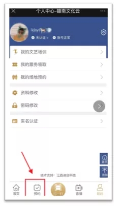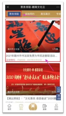 2、进入底部“预约”菜单,选择“票务领取”,第一个活动即是;