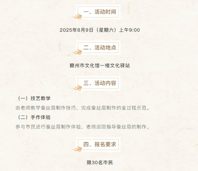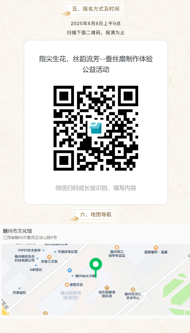 ※ 特别声明:本公众号仅用于赣州市文化馆公共文化服务及群众文化艺术普及,不用于任何商业用途。所转载文章及图片、视频、音频等版权均属原作者。如有侵权,请及时与本公众号联系。