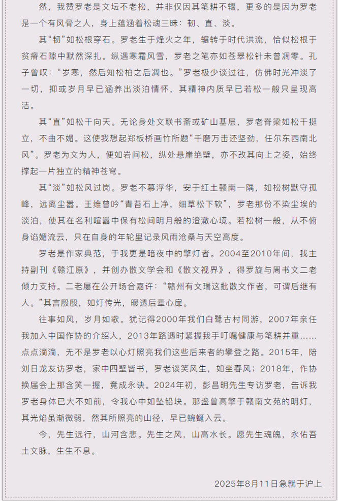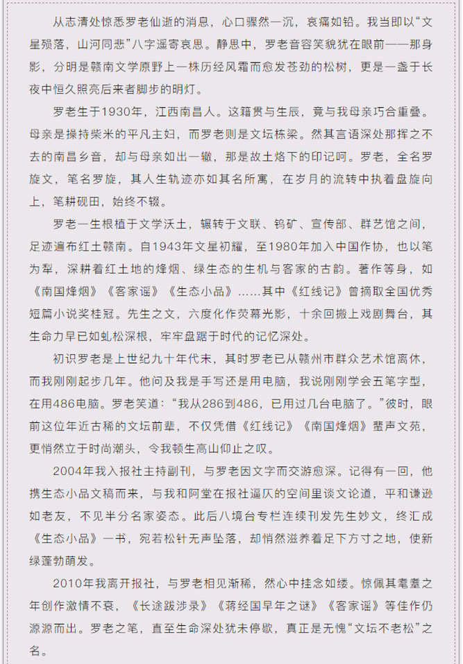 松魂长存——痛悼赣南文坛不老松罗旋文先生