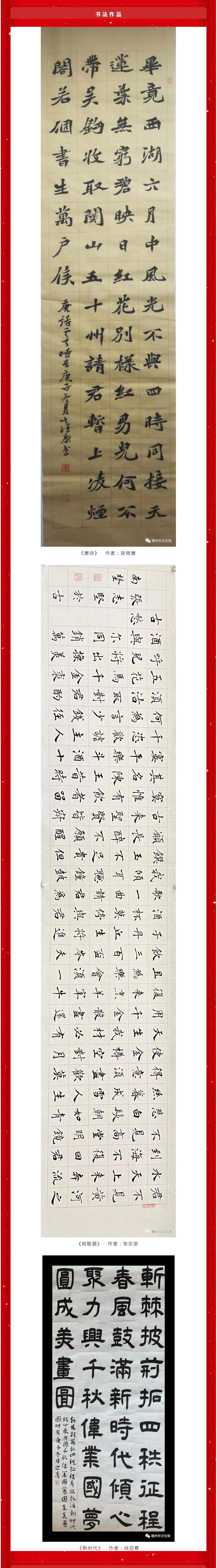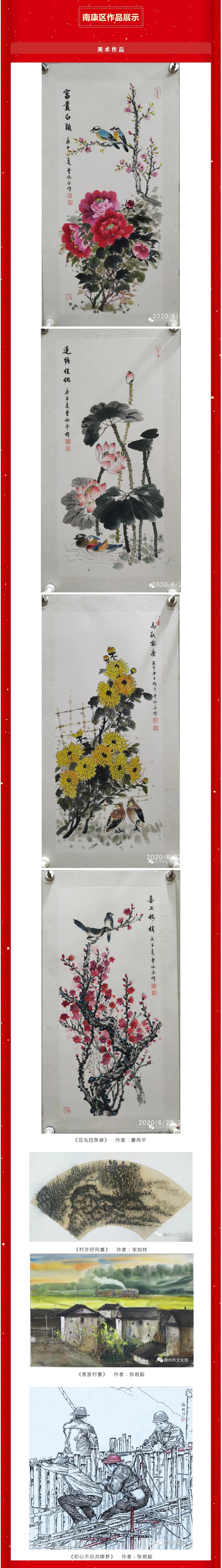 现从中择优整理编辑,美术、书法作品以“百年辉煌 继往开来”为主,摄影作品侧重于“民俗光影 幸福赣州”方面,文学类作品以“我的春节故事”为重点,通过赣南文化云网站、赣州市文化馆微信公众号进行“云展示”。我们站在“两个一百年”奋斗目标的历史交汇点上,观赏这一幅幅、一篇篇、一段段作品时,感悟到人民群众对祖国和家乡振兴发展的赞美之情,更加深刻感受到中国共产党的百年历程和伟大业绩,百年大党的梦想与追求、情怀与担当,从而勠力同心开启新时代的新征程!