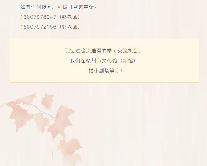 ※ 特别声明:本公众号仅用于赣州市文化馆公共文化服务及群众文化艺术普及,不用于任何商业用途。所转载文章及图片、视频、音频等版权均属原作者。如有侵权,请及时与本公众号联系。