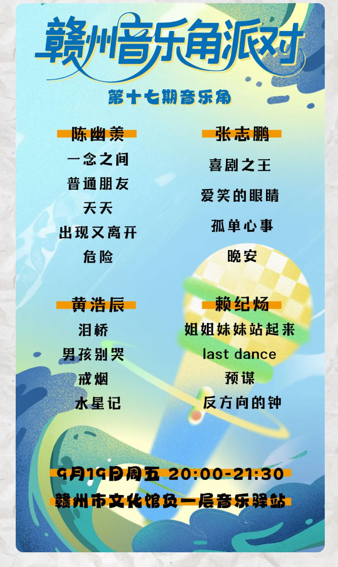 当前位置: 首页 > 文化动态 > 赣文轻骑兵 | 9.19第十七期音乐角派对:让熟悉的歌,重新打动你