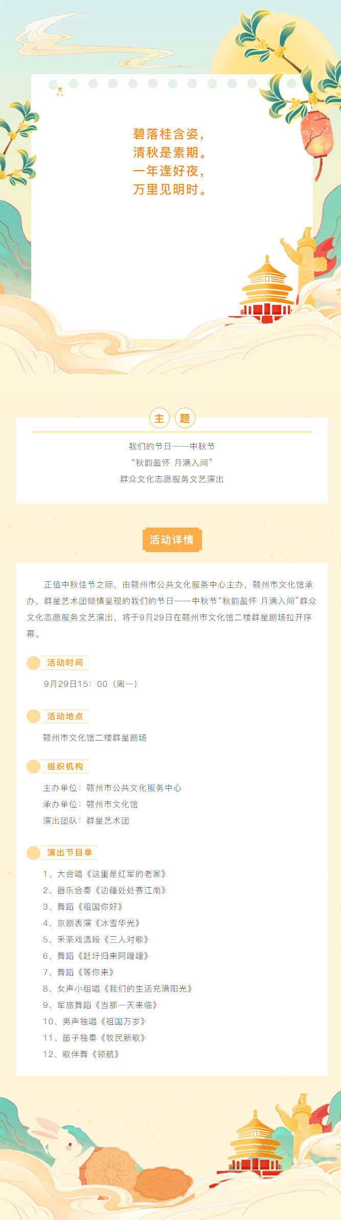 ※ 特别声明:本公众号仅用于赣州市文化馆公共文化服务及群众文化艺术普及,不用于任何商业用途。所转载文章及图片、视频、音频等版权均属原作者。如有侵权,请及时与本公众号联系。