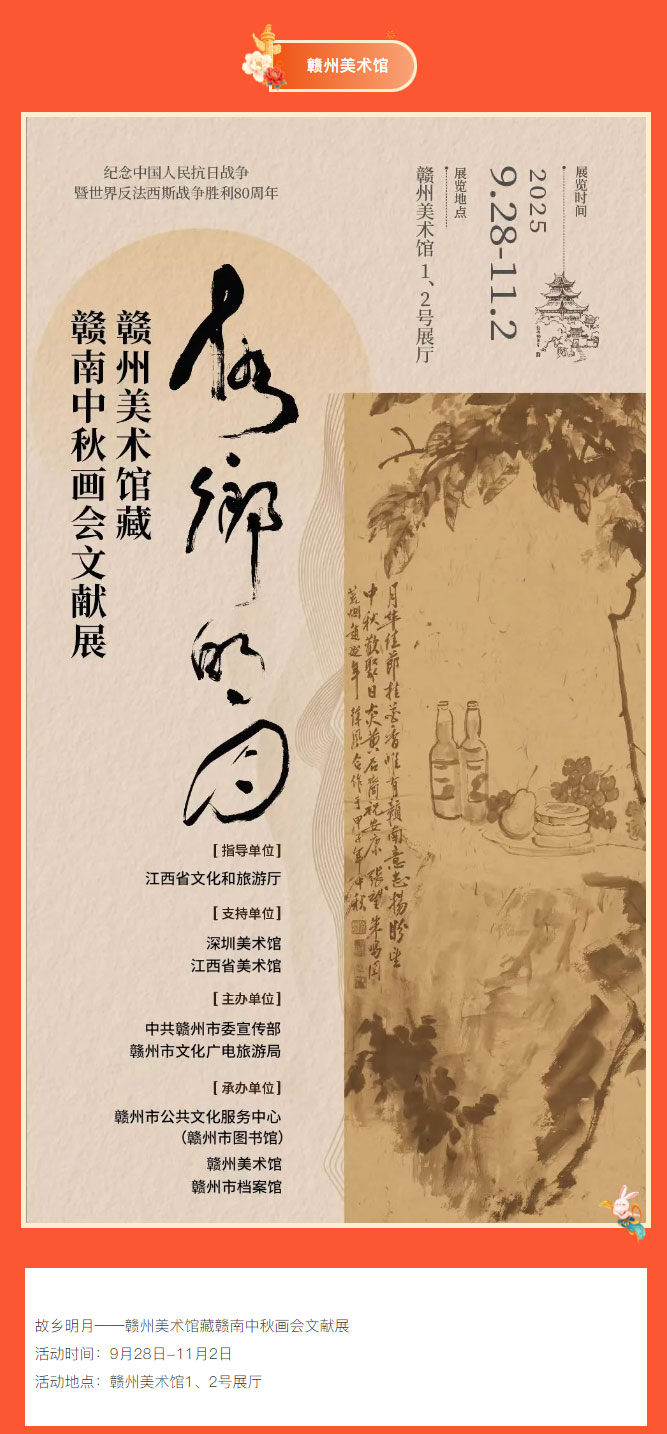 ※ 特别声明:本公众号仅用于赣州市文化馆公共文化服务及群众文化艺术普及,不用于任何商业用途。所转载文章及图片、视频、音频等版权均属原作者。如有侵权,请及时与本公众号联系。