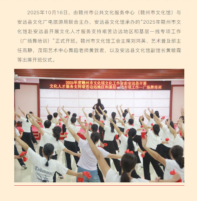 2025年度赣州市文化馆文化工作者赴安远县开展服务支持艰苦边远地区和基层一线专项工作(广场舞培训)圆满结束