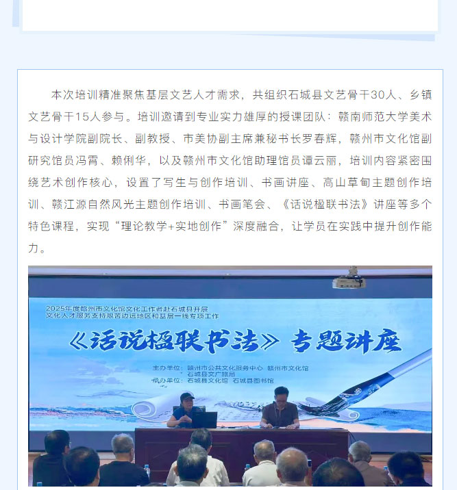 ※ 特别声明:本公众号仅用于赣州市文化馆公共文化服务及群众文化艺术普及,不用于任何商业用途。所转载文章及图片、视频、音频等版权均属原作者。如有侵权,请及时与本公众号联系。