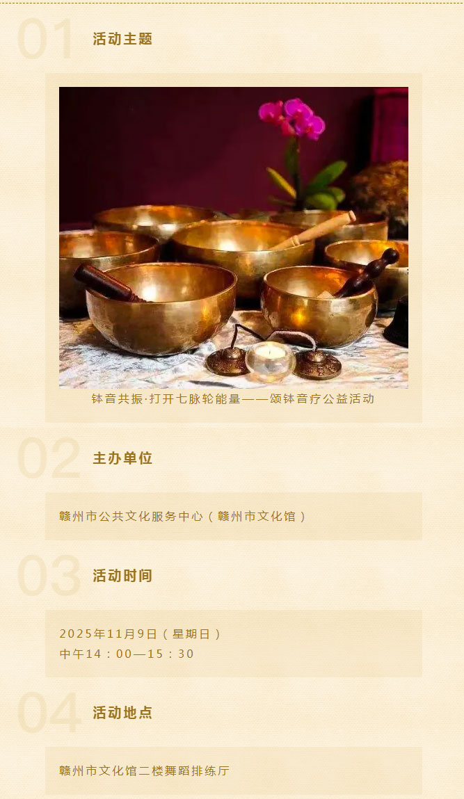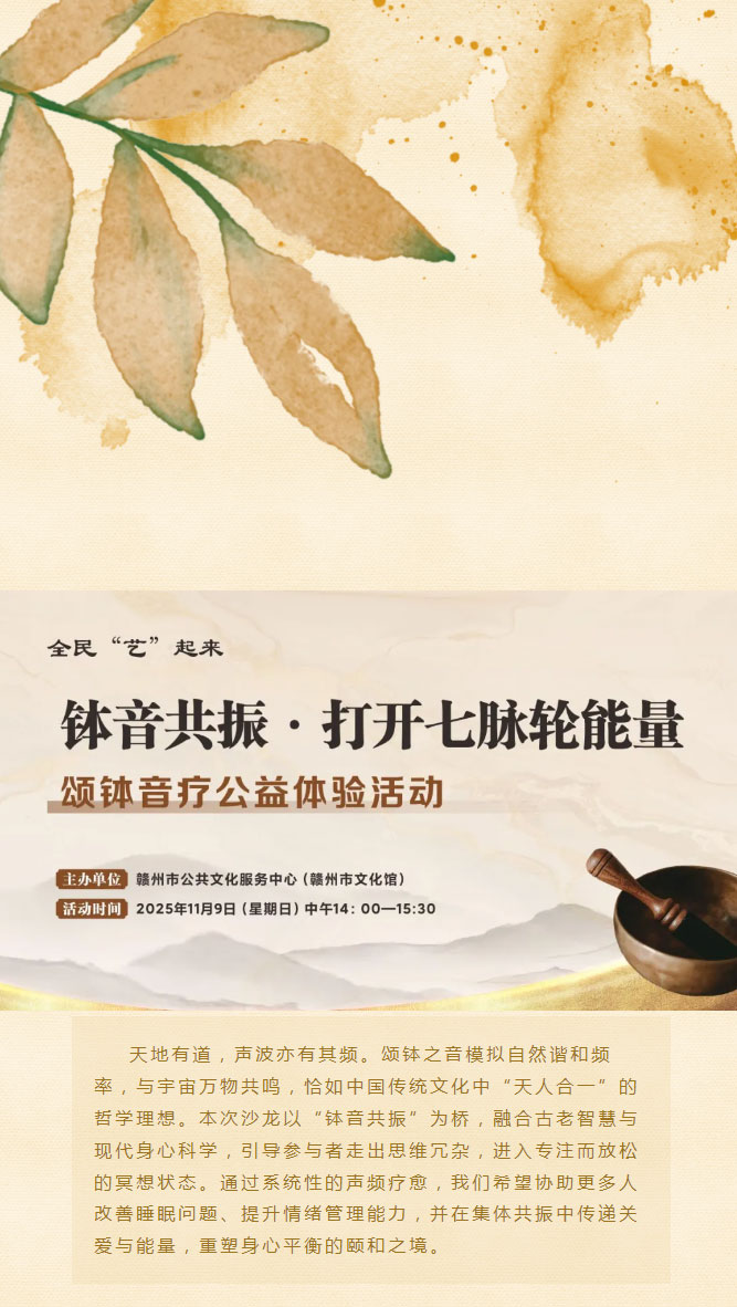※ 特别声明:本公众号仅用于赣州市文化馆公共文化服务及群众文化艺术普及,不用于任何商业用途。所转载文章及图片、视频、音频等版权均属原作者。如有侵权,请及时与本公众号联系。