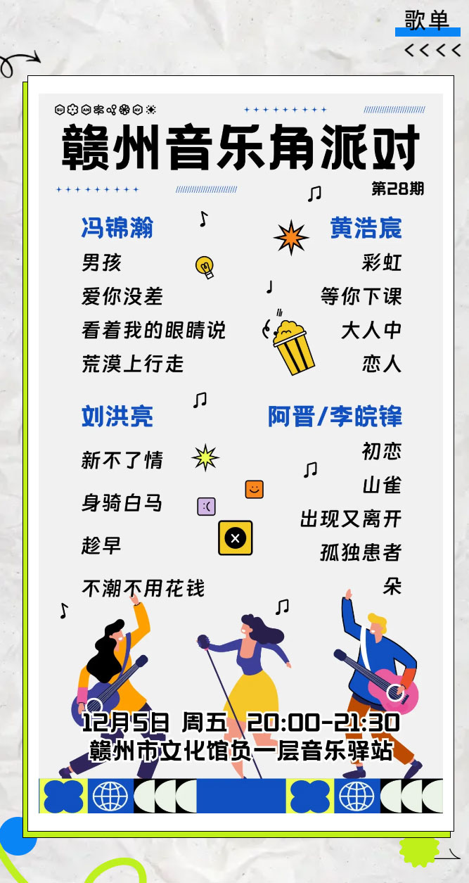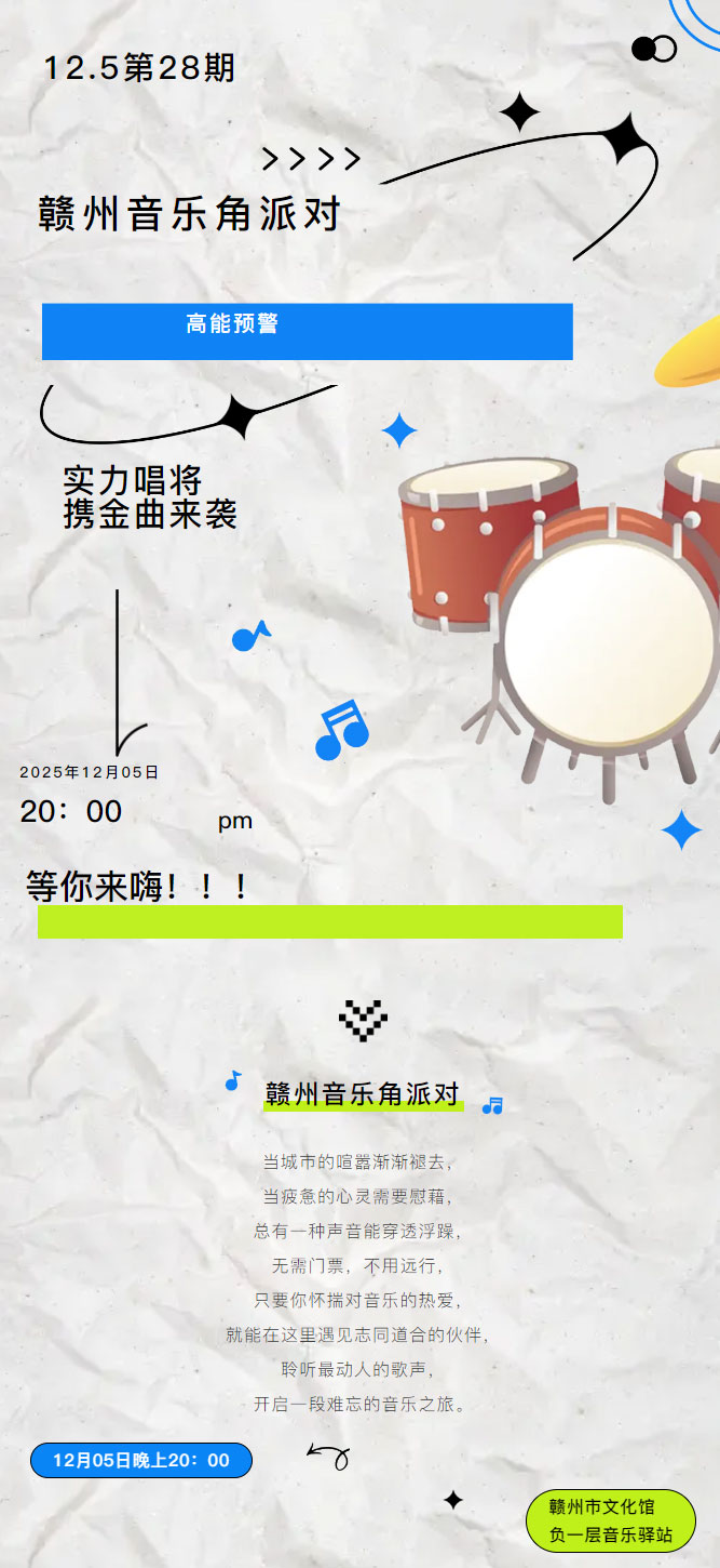 赣文轻骑兵 | 12.5第28期赣州音乐角派对高能预警!实力唱将携金曲赴约,等你来嗨