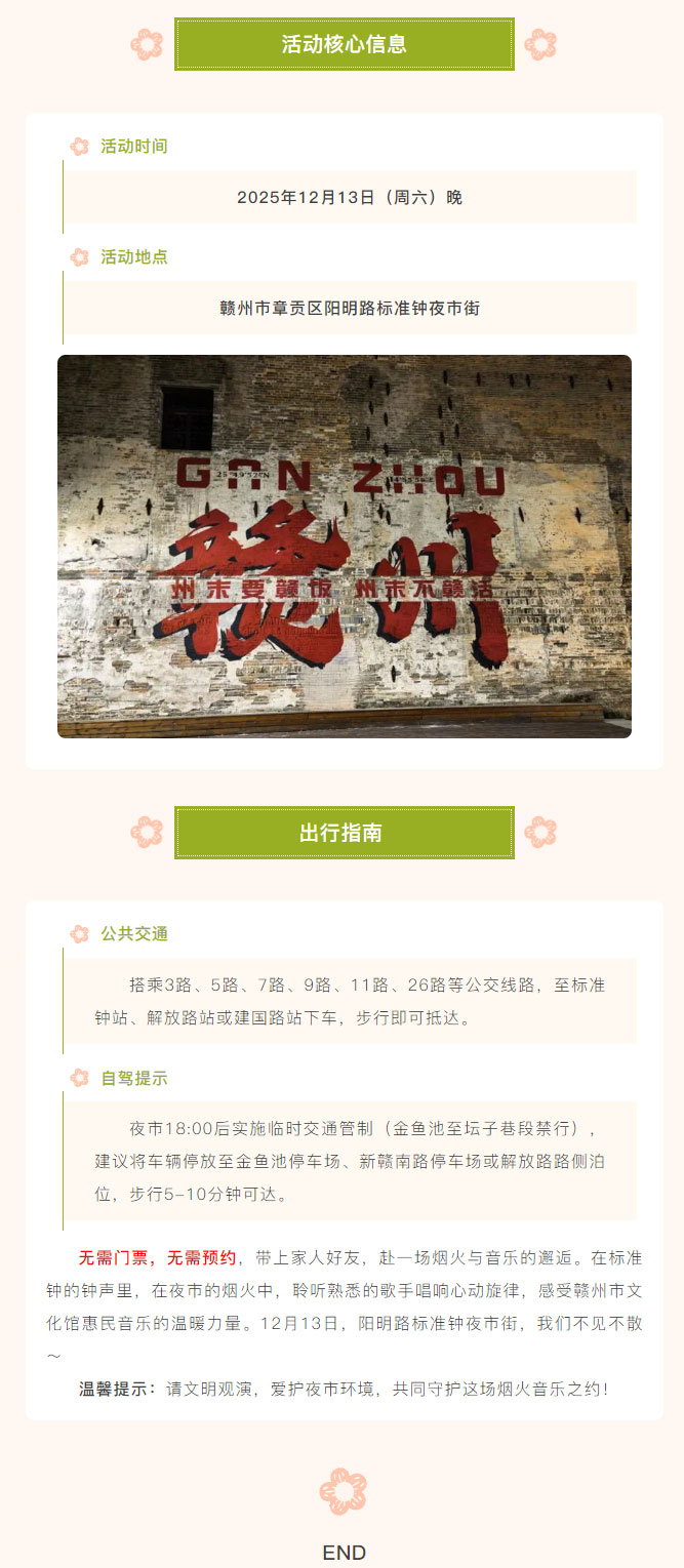 ※ 特别声明:本公众号仅用于赣州市文化馆公共文化服务及群众文化艺术普及,不用于任何商业用途。所转载文章及图片、视频、音频等版权均属原作者。如有侵权,请及时与本公众号联系。