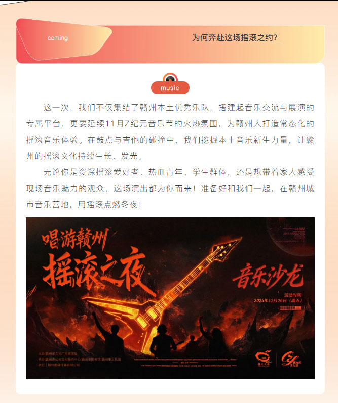 当前位置: 首页 > 文化动态 > 唱游赣州 摇滚之夜|12.26,本土乐队点燃城市音乐营地!