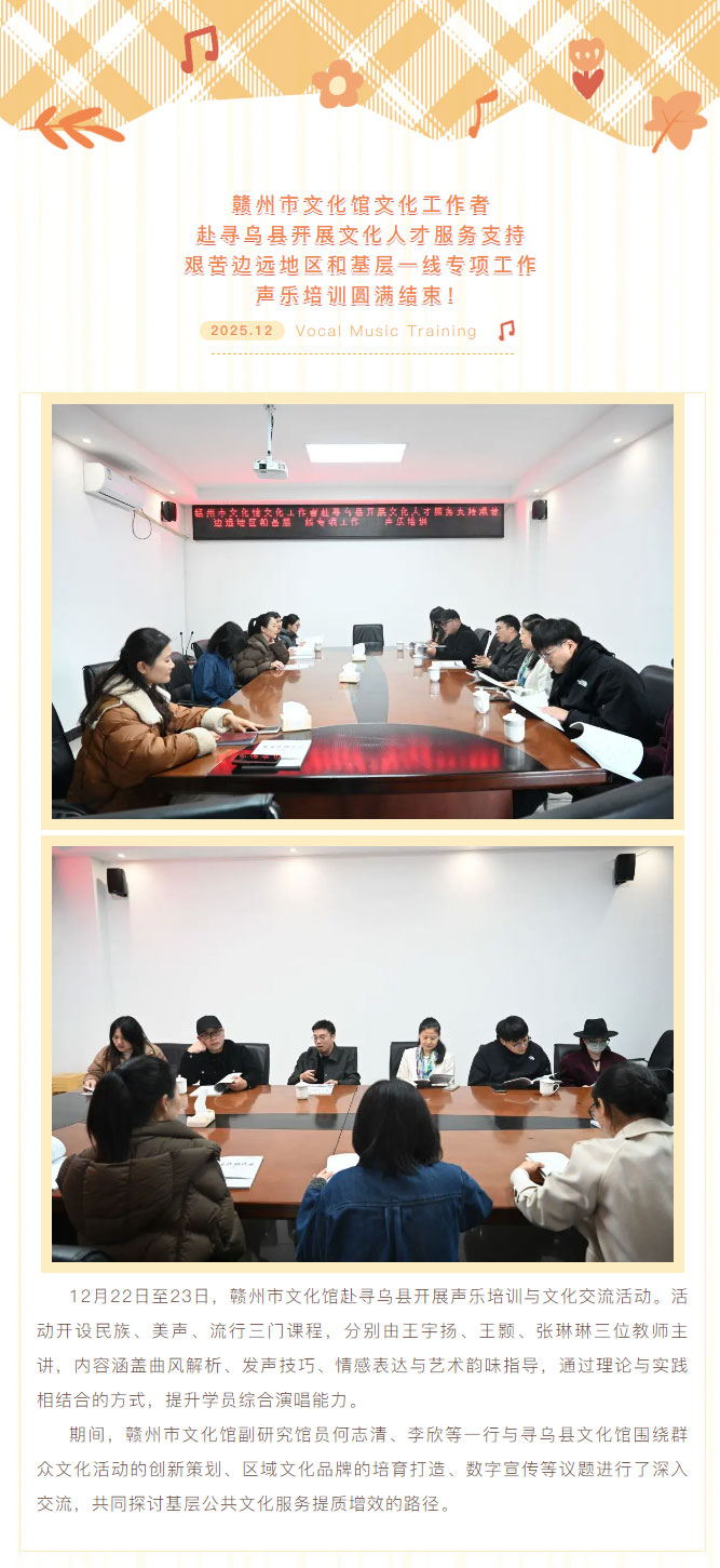 赣州市文化馆文化工作者赴寻乌县开展文化人才服务支持艰苦边远地区和基层一线专项工作声乐培训圆满结束!