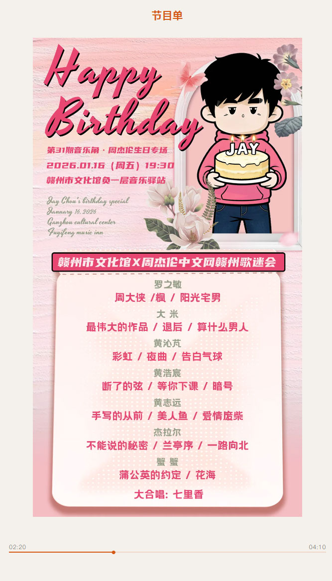 赣文轻骑兵|赣州市文化馆×周杰伦中文网赣州歌迷会,生日专场邀你赴约