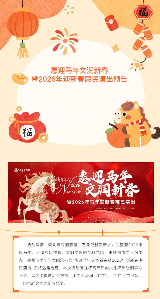 ※ 特别声明:本公众号仅用于赣州市文化馆公共文化服务及群众文化艺术普及,不用于任何商业用途。所转载文章及图片、视频、音频等版权均属原作者。如有侵权,请及时与本公众号联系。