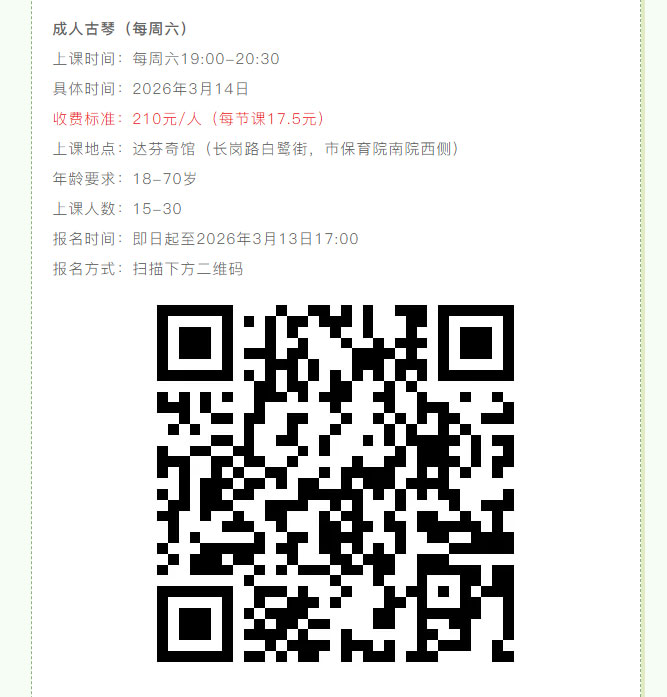 当前位置: 首页 > 文化动态 > 成人古琴普惠班,专为零基础琴友开设,新手速成班火热报名中!