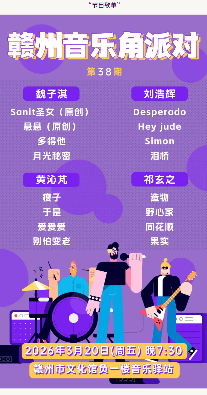 ※ 特别声明:本公众号仅用于赣州市文化馆公共文化服务及群众文化艺术普及,不用于任何商业用途。所转载文章及图片、视频、音频等版权均属原作者。如有侵权,请及时与本公众号联系。