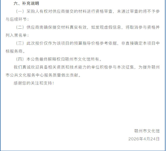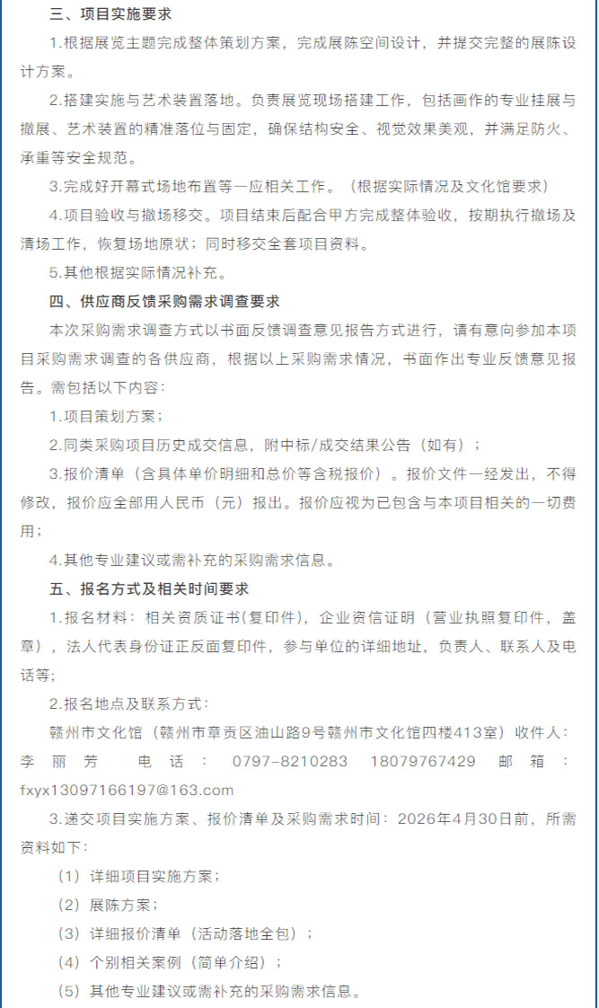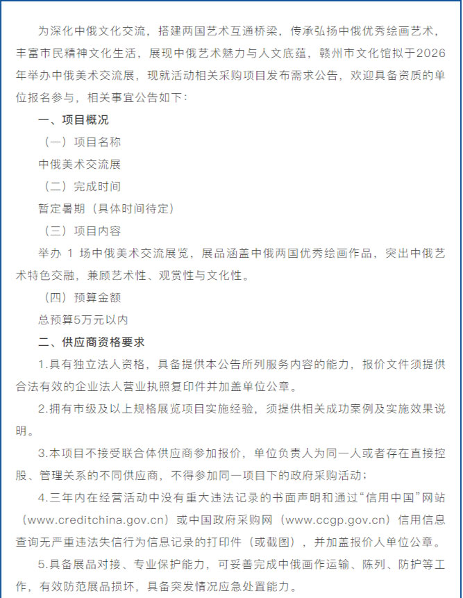 赣州市文化馆2026年中俄美术交流展览项目需求公告