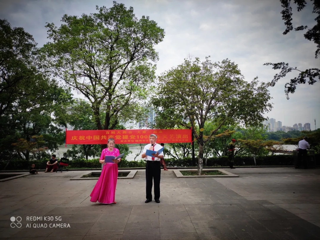 ▲6月5日、29日,馨悦艺术团分别在安居休闲公园、白马庙戏台参加了由赣州市文化馆主办的“庆祝建党100周年”专场文艺演出。