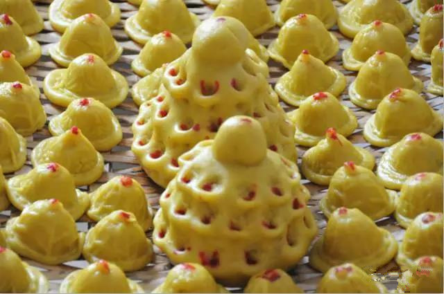 除了祭祖用的帽状外,还可做出长条形。放入锅中蒸熟,就可食用。