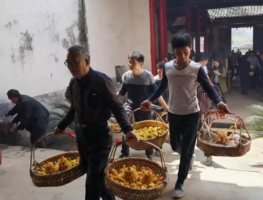 宣读告文。读毕,将告文焚烧,礼成。随后,各房系代表在祠堂聚餐,共谋宗族大计。添丁人家则办酒席招待前来祝贺的亲朋好友。