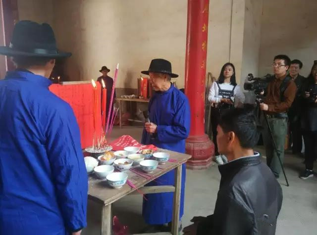 在礼生的引导下,各家各户行小三献礼,读告文,祈求祖先庇佑新生男丁健康成长,保佑各房系兴旺发达。