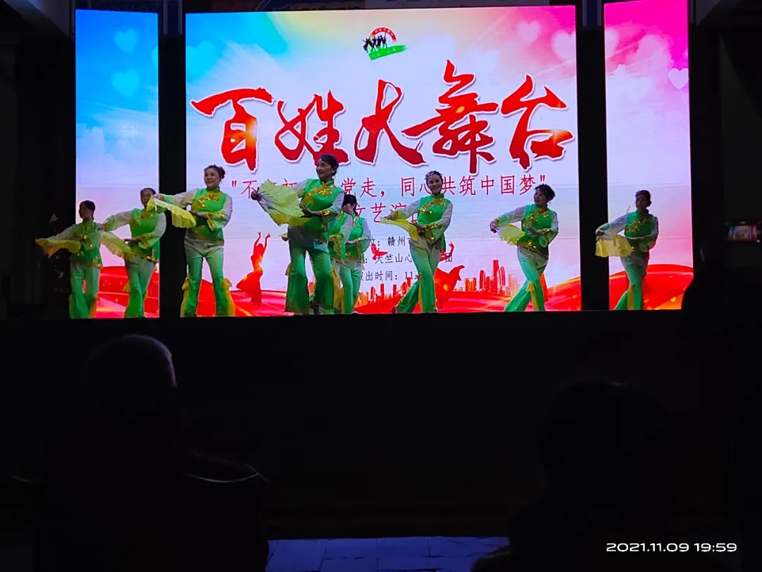 ▲11月16日晚,金秋艺术团在郁孤台小戏台举行“‘百姓大舞台,大家一起来’奋斗百年路.启航新征程”颂党恩群众文艺演出。