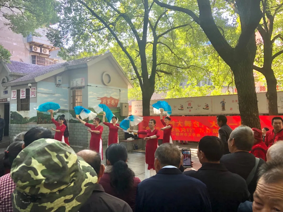 ▲11月20日,新赣南路社区艺术团在郁孤台白马庙舞台举行“‘百姓大舞台,大家一起来’贯彻落实十九届六中全会精神”专题文艺演出。